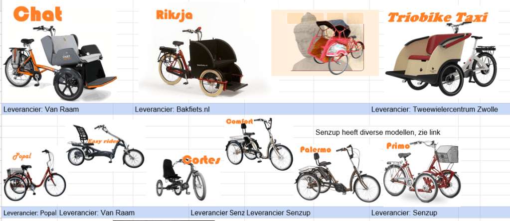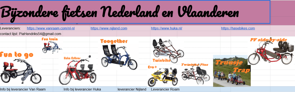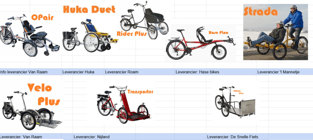link naar info over aangepaste fietsen: https://docs.google.com/spreadsheets/d/1hBnO5fT2ptcLvW5pJ_j1dKgkra2sayzvL892S6e_Ggg/edit#gid=0